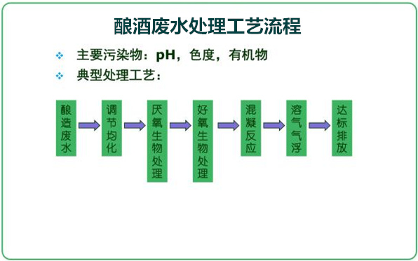 寧波鄞州區(qū)咸祥鎮(zhèn)釀香酒業(yè)公司主要釀造高檔白酒,在白酒釀造過程中會產(chǎn)生各種釀造廢水,其中主要污染物有PH、色度、有機物等,廢水的可生化性比較高,且含COD的濃度也比較大,我公司針對該公司釀酒廢水的特點,專門設(shè)計了“厭氧+好氧”的組合生物處理工藝,首先去除廢水中的大部分COD與有機物,然后再采用“混凝+氣浮”的物化處理工藝,來進一步去除廢水體中的懸浮物和COD,最終保證該公司排放的廢水穩(wěn)定達標(biāo)。